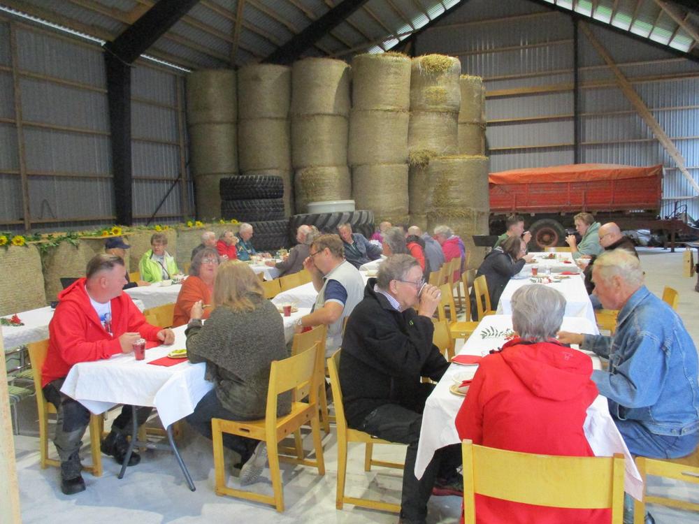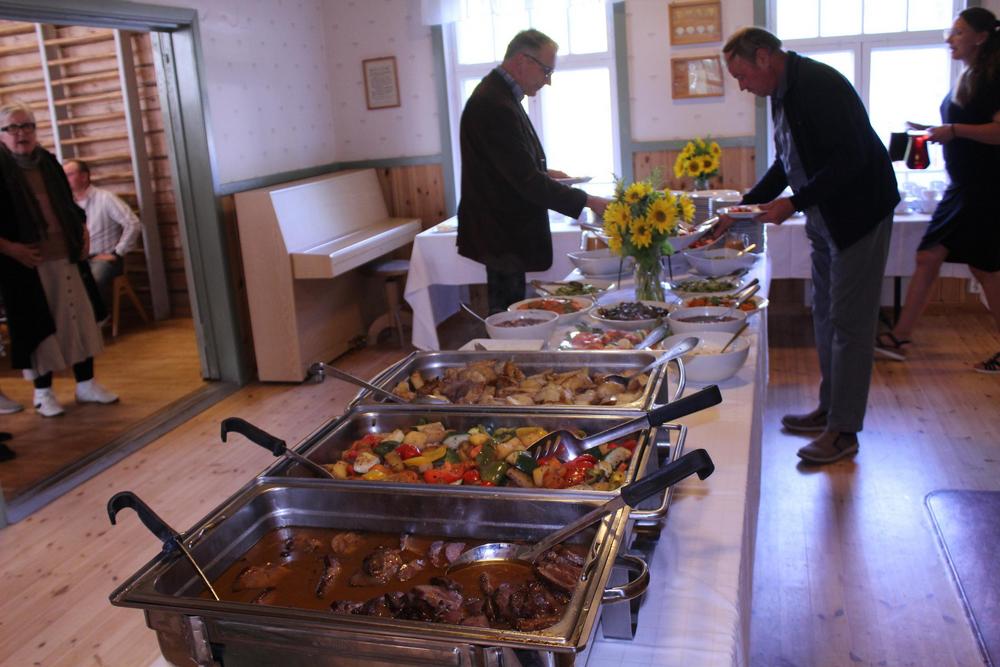 Metsästyksen jälkeen ohjelmassa oli ruokailu hirvikeiton, savupaistivoileipien ja muiden lisukkeiden merkeissä. Jälkiruuaksi oli kahvit mokkapalojen kera. Ruokailuun osallistui myös sellaisia maanomistajia, jotka eivät tällä kertaa metsästykseen osallistuneet. Niinpä ruokailuun osallistuikin seuralle ennätyksellisen paljon ihmisiä ja ruoka-annoksia meni 94 kpl. Nuoria näistä oli noin neljännes. Ruokailun lomassa nuorille oli ohjattua ilmakivääriammuntaa. Tulokset ikärakenne huomioiden olivat todella hyviä. Lapset saivat ammunnasta muistoksi metalliset laatat, mehua ja pienet makeiset. Myös sää suosi tapahtumaamme, oli kuiva, lämmin syyspäivä.