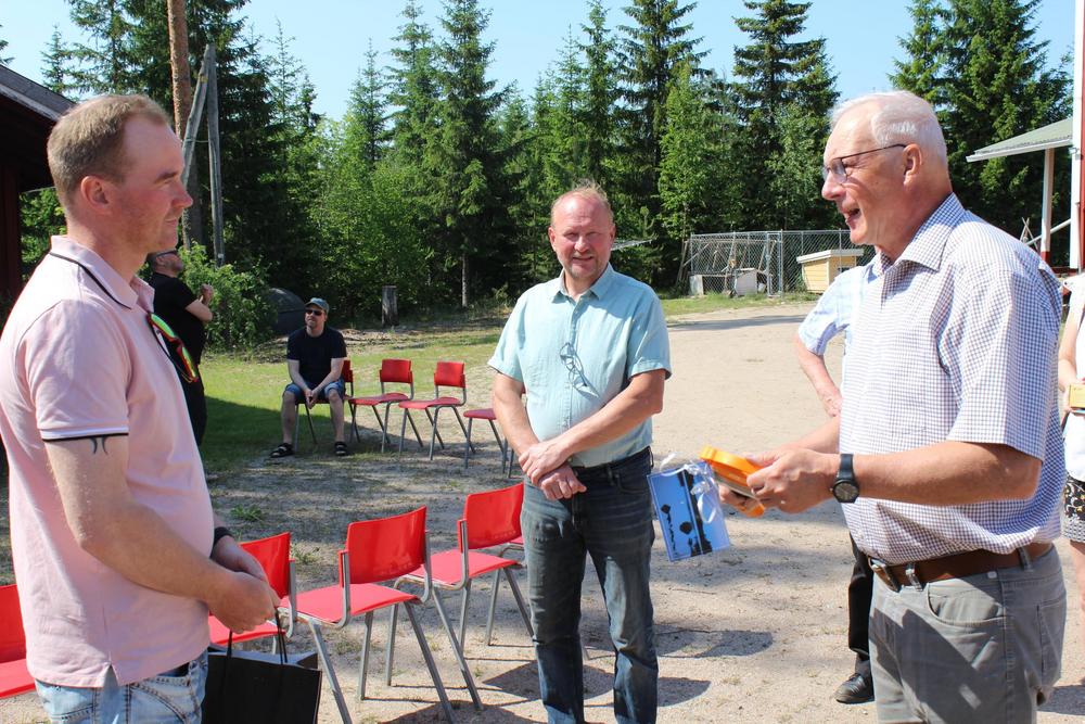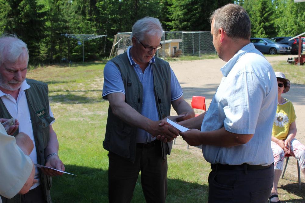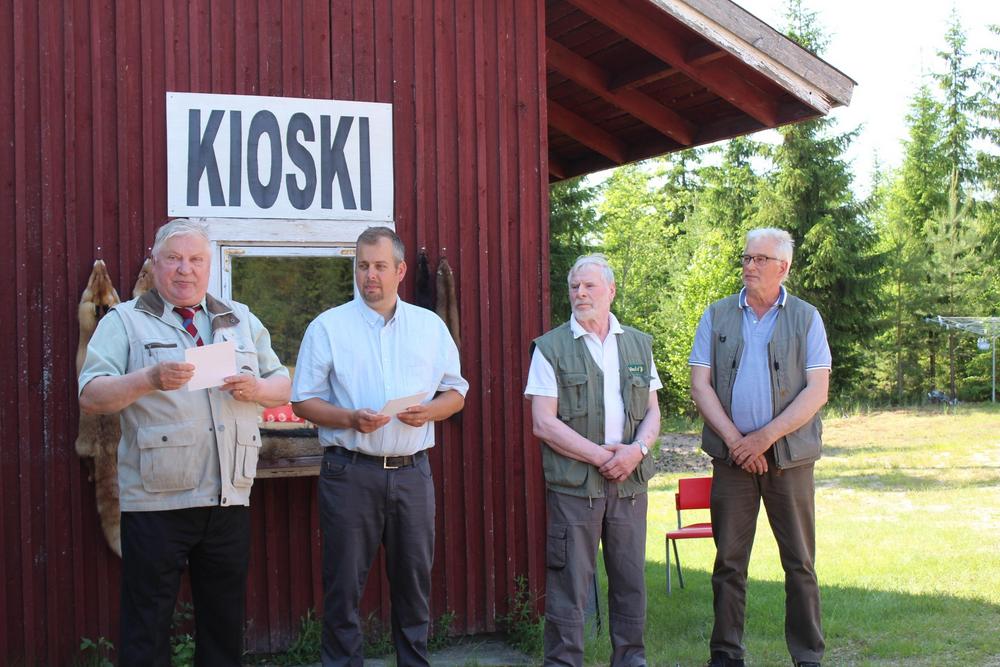 Jäminkipohjan Erämiehet viettivät 50-vuoden taipaletta Kauko-Pohjalla 17.6.2023. Tilaisuus oli hienosti järjestetty ja lämminhenkinen. Sää oli myös helteinen, mutta lihasoppa oli maittavaa ja kakku oli maukasta. Juhlassa Ruoveden RHY palkitsi hopeiella ansiomerkillä ja kunnaikirjalla Lauri Inkisen, Pekka Mikkolan ja Antti Nippalan. Seura palkitsi myös Elina Hautamäen ja Arto Ahosen. Alla on muutamia kuvia päivän juhlatilaisuudesta ja lisää kuvia löytyy Seuojen juhlia sivulta.
