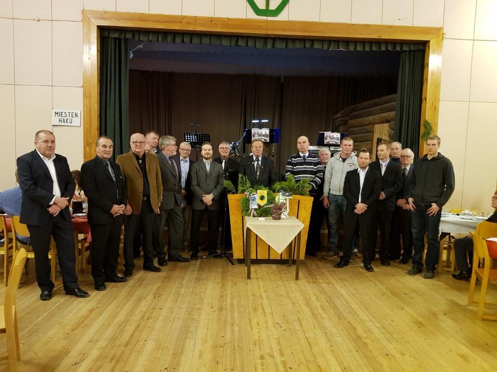 Jarkon Hirviseurue juhli merkkipäivää peijaisten merkeissä 24.11.2018. Kauko-Pohjan nuorisoseuran talolle Jäminkipohjaan oli kokoontunut 170 henkeä mukana maanvuokraajia, naapureita ja yhteistyökumppaneita. Puheenjohtaja Veikko Rouhiainen esitteli seurueen jäsenet. Juhlamieltä kohotti kansanedustaja Arto Pirttilahti kertomalla valtiovallan suunnitelmia ja toi eduskunnan eräkerhon tervehdyksen. Monet lähiseurat muistivat onnitteluin juhlivaa seuraa. Riistakeskus ja Riistanhoitoyhdistys muistivat palkitsemalla seuran pitkäaikaisia ja ansioituneita jäseniä. Väärin laulajat esittivät lauluja ja sketsejä aikuisille ja joulupukki kävi tervehtimässä nuorimpia vieraita. Iltaa jatkettiin tanssien, muistellen menneitä ja hoitaen suhteita. Vieraille arvottiin vielä kotiin vietäväksi hirvipaisteja. Kuvia otti Vuokko Mäenpää.
